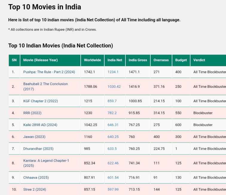 জিও স্টুডিওস (Jio Studios)-এর প্রকাশিত তথ্য অনুযায়ী, ‘ধুরন্ধর’ ২০২৫ সালের সর্বোচ্চ আয়কারী ভারতীয় সিনেমা।
