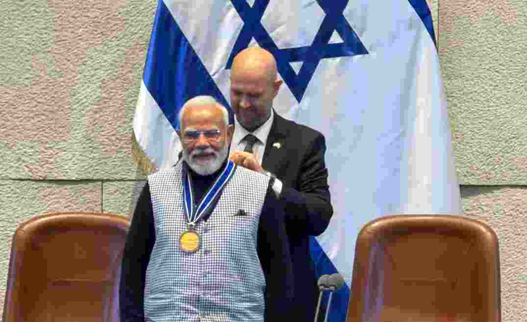কলকাতা ট্রিবিউন ডেস্ক: ইসরায়েল সফরে গিয়ে ঐতিহাসিক সম্মান পেলেন ভারতের প্রধানমন্ত্রী নরেন্দ্র মোদী (Narendra Modi)। ইসরায়েলের সংসদ Knesset তাঁকে ‘Speaker of the Knesset Medal’ প্রদান করেছে। যা কনেসেটের সর্বোচ্চ সম্মান।